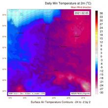 Rys. 5. Rozkład minimalnej dobowej temperatury powietrza wokresie 21–28.02 wg modelu WRF-CFS