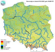 Na w połowie lutego jak i na początku marca na rzekach dominowała strefa wody średniej i wysokiej, tylko miejscami zaznaczyła się strefa wody niskiej. Jednak ponad 20 dni bez opadu spowodowało gwałtowny przyrost liczby stacji wodowskazowych w strefie wody niskiej. Woda wysoka utrzymuje się głównie w zlewni Narwi i punktowo w północnej połowie kraju. Tylko na 4 do 7 stacji wodowskazowych występowały przepływy poniżej SNQ (poziom poniżej którego mówimy o suszy hydrologicznej), ale tempo spadku stanu wody w rzekach jest niepokojący i bacznie przyglądamy się tym trendom.